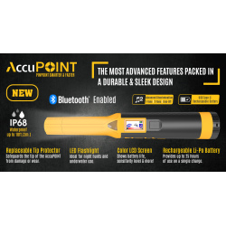 abriqué par la marque Nokta, l'Accupoint est le meilleur pinpointer du marché. Etanche à 3m (IP68) avec batterie rechargeable LiPo offrant jusqu'à 25heures d'autonomie, l'ACCUPOINT est le seul pinpointer au monde doté d'une véritable discrimination pouvant rendre complètement silencieux les déchets en fer. Son écran couleur vous permet une navigation aisée dans les menus et offre de nombreux réglages. Vous pouvez également le coupler à votre casque sans fil Nokta BT ou n'importe quel autre casque Bluetooth faible latence. Pinpointer VLF fonctionnant à la fréquence de 20kHz, l'Accupoint est livré avec protège-tête interchangeable, holster, câble de charge USB-c et cordon de sécurité.